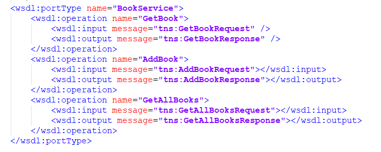 3. A WSDL portType is used to combine multiple messages (e.g. input, output) into a single operation. Here we define three synchronous (input/output) operations